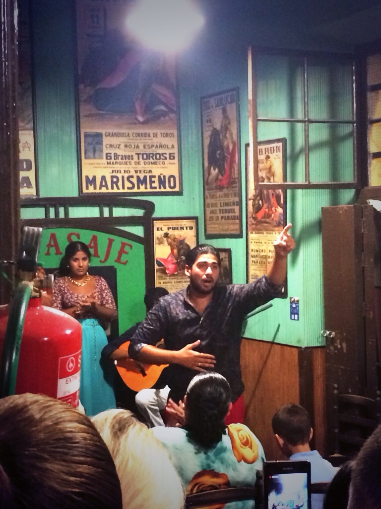 As with many traditional tabancos, your bill is marked down in chalk on the bar in front of you – the pic above reminds me that we were maintaining a very respectable chicharrónes to sherry ratio of 1:2. The majority of other tourists seem to stick to beer; they’re really here for the flamenco, and the sherry accoutrements merely serve as novel selfie backdrops for them.